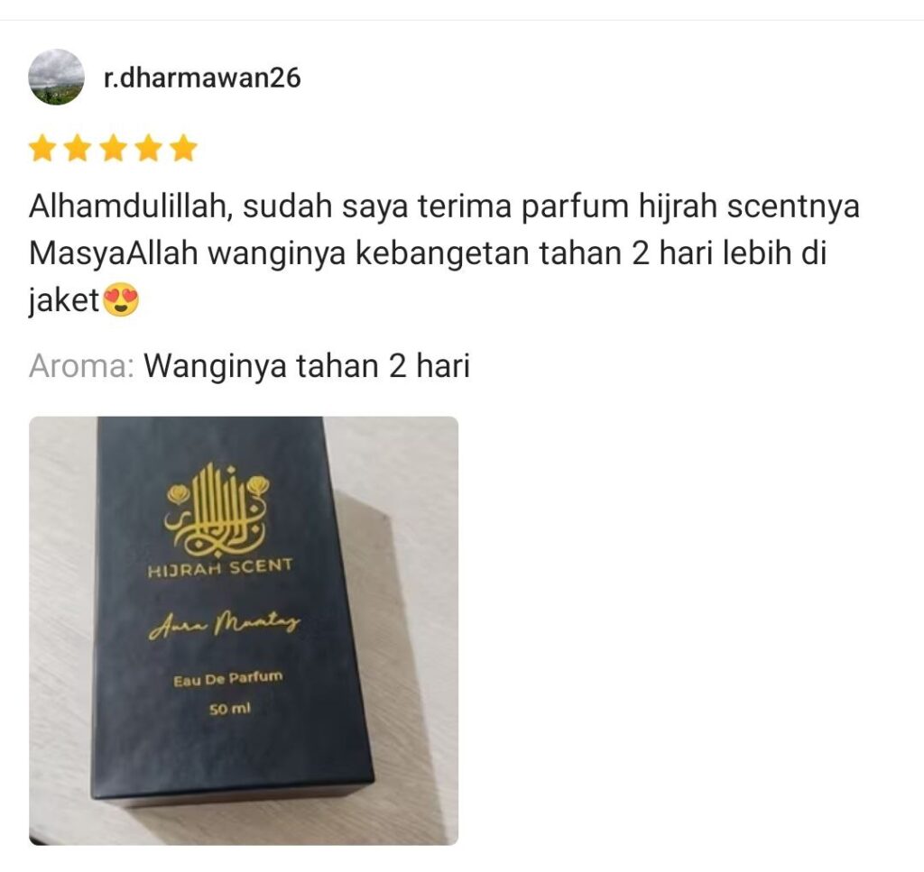 Aroma elegan dan tahan lama dari Hijrah Scent kini dapat Anda miliki tanpa harus membayar mahal.